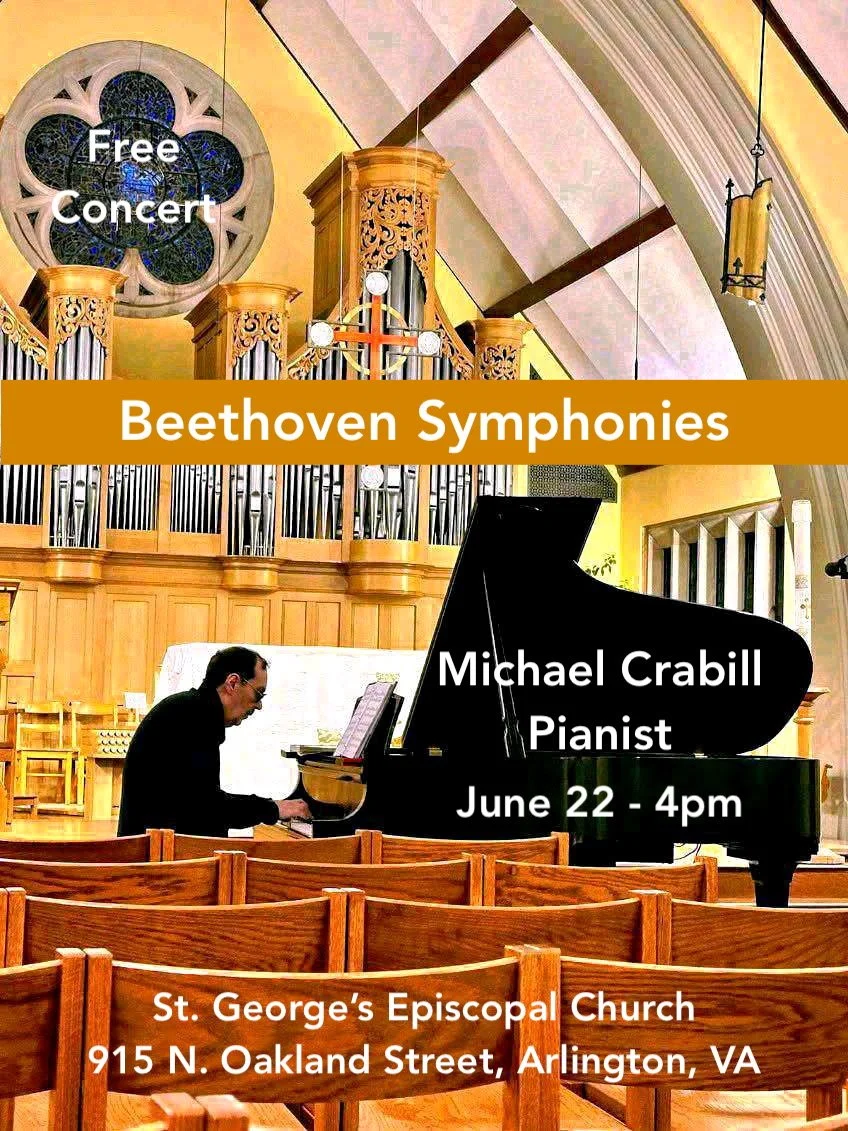 Pianist Michael Crabil plays transcriptions of Beethoven Symphonies. The concert is free. All are welcome.